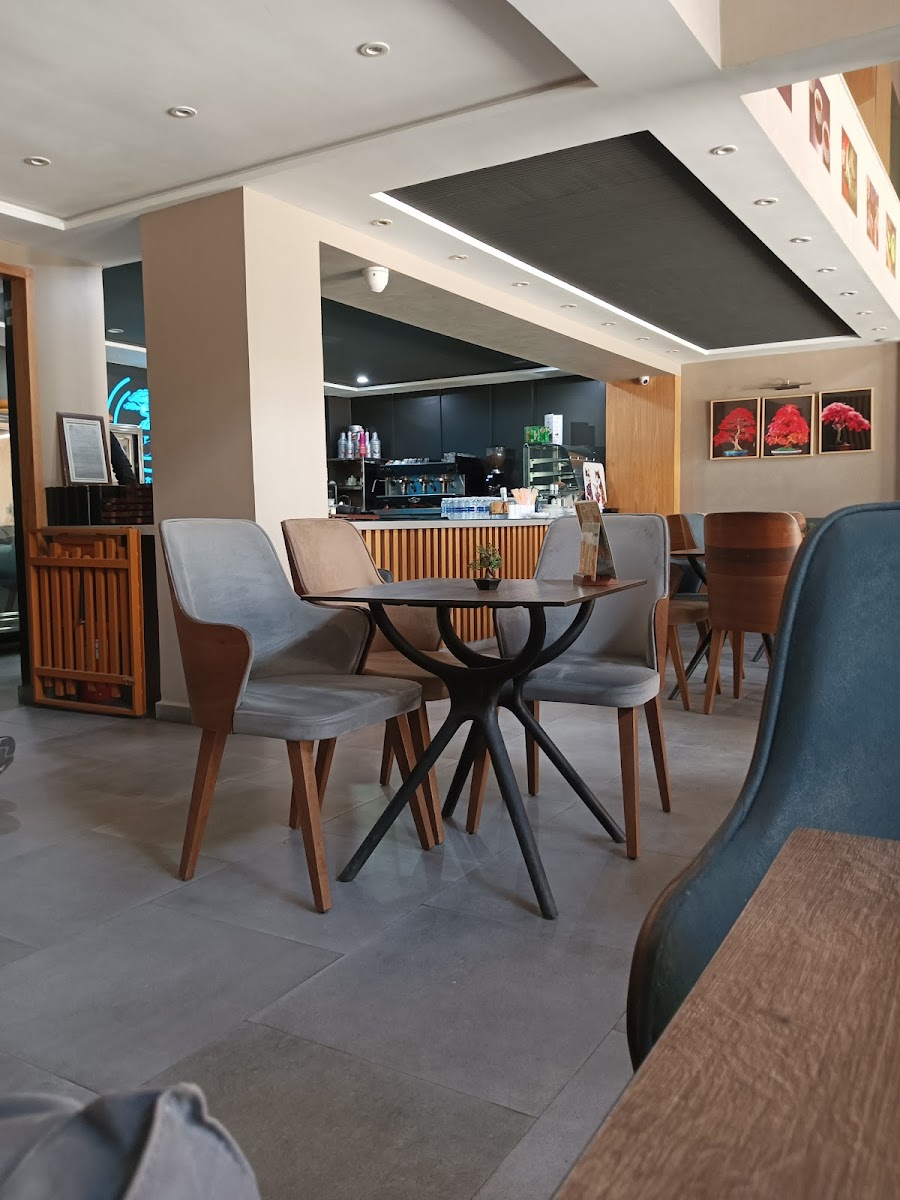 The decorations and layout strike a balance between modern minimalism and traditional Moroccan influences, creating a stylish yet cozy environment. The tasteful decor, accompanied by lush green plants, brings a touch of nature indoors, reminding you to slow down and savor the moment with each sip.